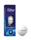 sku: MKT1201Titleist Soft Tour white USA Made golf ball with green Nucor logo. Sleeve of 3 golf balls.