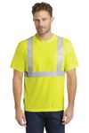 Stay safer on the jobsite in this high-visibility t-shirt that works as hard as you do. | ANSI/ISEA 107 Class 2 certified 5.9-ounce 100% polyester interlock Wicks moisture 2-in. wide reflective taping on front and back Left chest pocket for pens and notes